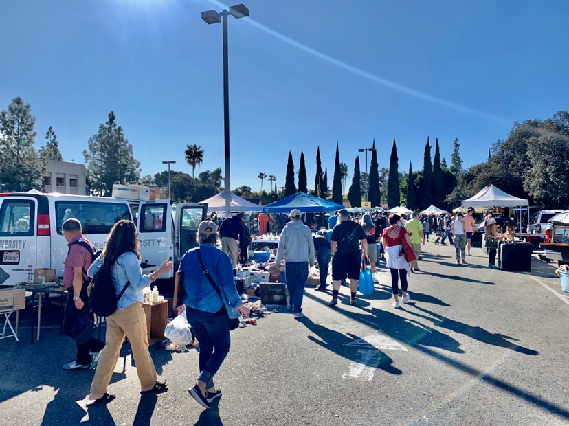 On the first Sunday of the first week of each month, the flea market held at the bashadina community college has three regional stalls on display. They are two outdoor parking lots and one indoor parking lot. The first Sunday in February 2020 is a sunny day.